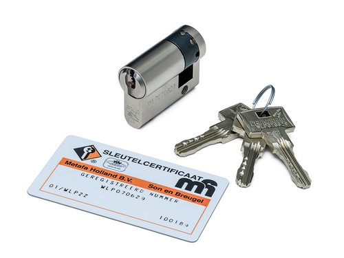 Dit is een cilinder met gecertificeerde sleutels, wat betekent dat nieuwe sleutels alleen na te bestellen zijn op vertoon van het meegeleverde certificaat. Hierdoor bent u ervan gegarandeerd dat de sleutels nooit zomaar nagemaakt kunnen worden.