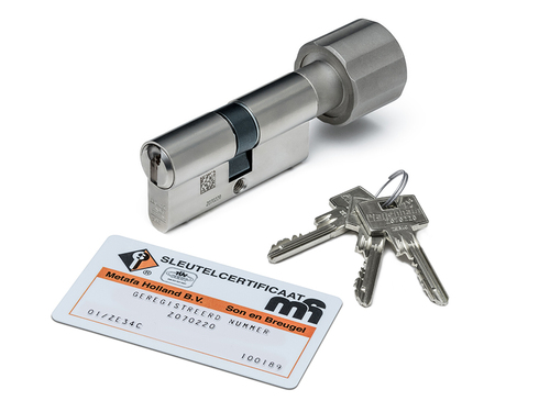 Dit is een cilinder met gecertificeerde sleutels, wat betekent dat nieuwe sleutels alleen na te bestellen zijn op vertoon van het meegeleverde certificaat. Hierdoor bent u ervan gegarandeerd dat de sleutels nooit zomaar nagemaakt kunnen worden.